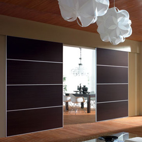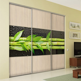 - При помощи такой двери можно создать уникальный дизайн шкафа-купе. Его можно разделить на несколько секций, каждая из которых будет открываться отдельно.